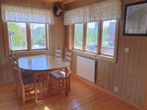 In the cottage you will find a living room with a bed sofa with top madrass (140*200 cm), comfortable armchair and a TV with basic channels. (Please note that the fireplace is not in use). The living room has a open plan to the dining area and kitchen space. The bed room has a double bed 140*200 cm and one singel bed 90*200 cm. Spring matresses in all beds. Bathroom with shower and WC. Patio with barbecue and sun beds.