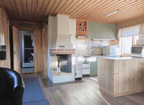 There are 2 rooms. A large living room with a and comfortable arm chair and sofa. TV with a few channels. Please note that the fireplace can not be used! Dining area and kitchen space. Bed room with double bed 140*200 cm and one singel bed 90*200 cm. Spring matresses in all beds. Bathroom; shower and WC. Patio with barbecue.