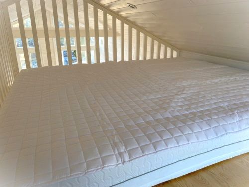 Upstairs is the sleeping loft with a comfortable mattress for two people (not standing height)