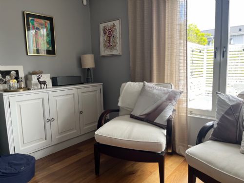 Exit to balcony with table, chair and a small lounge sofa, here you can enjoy both morning sun and sunset.