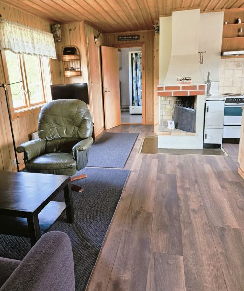 Stugan har ett stort vardagsrum, matplats och kök i öppen planlösning. Vardagsrummet har en bäddsoffa (140*200 cm med bäddmadrass), fåtölj och TV med baskanaler. (Eldstaden i huset är ej i bruksskick). Köket är välutrustat med diskmaskin och det finns en ljus fin matplats med utsikt över Långviks by. Sovrummet har en dubbelsäng på 140*200 cm samt en enkelsäng på 90*200 cm. Badrummet är utrustat med dusch, handfat och vattentoalett. På uteplatsen sitter du avskilt med sol hela dagen ändå till solnedgång. Här kan du grilla ostört och njuta av varma sommarkvällar!