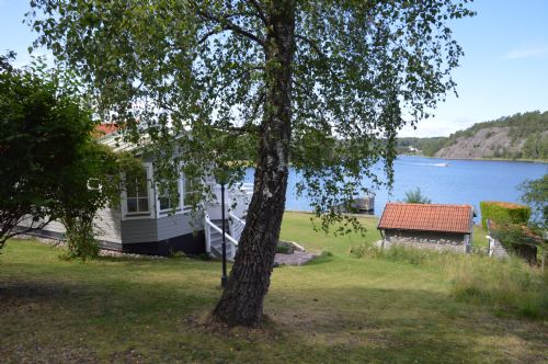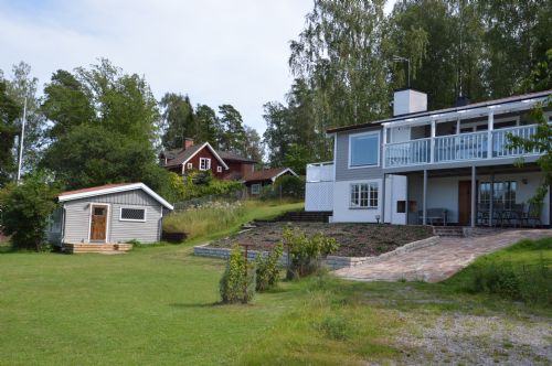 ID3157Stort lantligt beläget hus och rymlig gäststuga på sjötomt med panoramavy över Myttingeviken. Inhägnad tomt med stor gräsmatta, körsbärsträd och privat brygga.