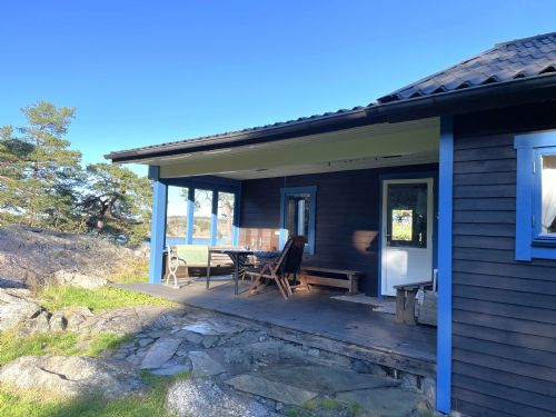 2 sovrum i huvudstugan ed sköna resårsängar. Sovrum 1 med 2 sängar ihop här finns även TV, sovrum 2 med 2 enkelsängar isär. Skyddad altan under tak.