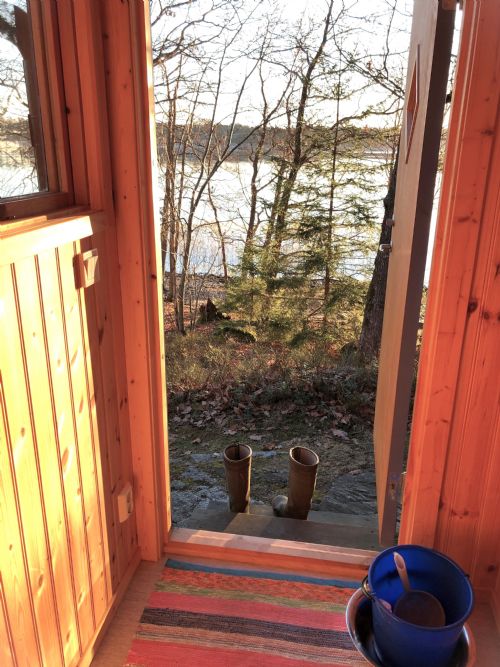 Nybyggt bastuhus 15 m2 med stor vedeldad bastu och ett härligt relaxrum där ni kan sitta och koppla av med den vackra sjöutsikten i blickfång. Från bastun är det nära ner till bryggan och svalkande bad. I bastun värmer ni varmvatten i en behållare på bastuaggregatet för att använda vid tvagning genom att skopa vatten över kroppen på ett mindre trädäck vid bastun.
