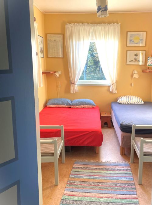 Det finns även ett mindre rum med 2 bäddar i våningssäng med skumgummimadrasser som ev. kan nyttjas på förfrågan för tillfälliga övernattande gäster.