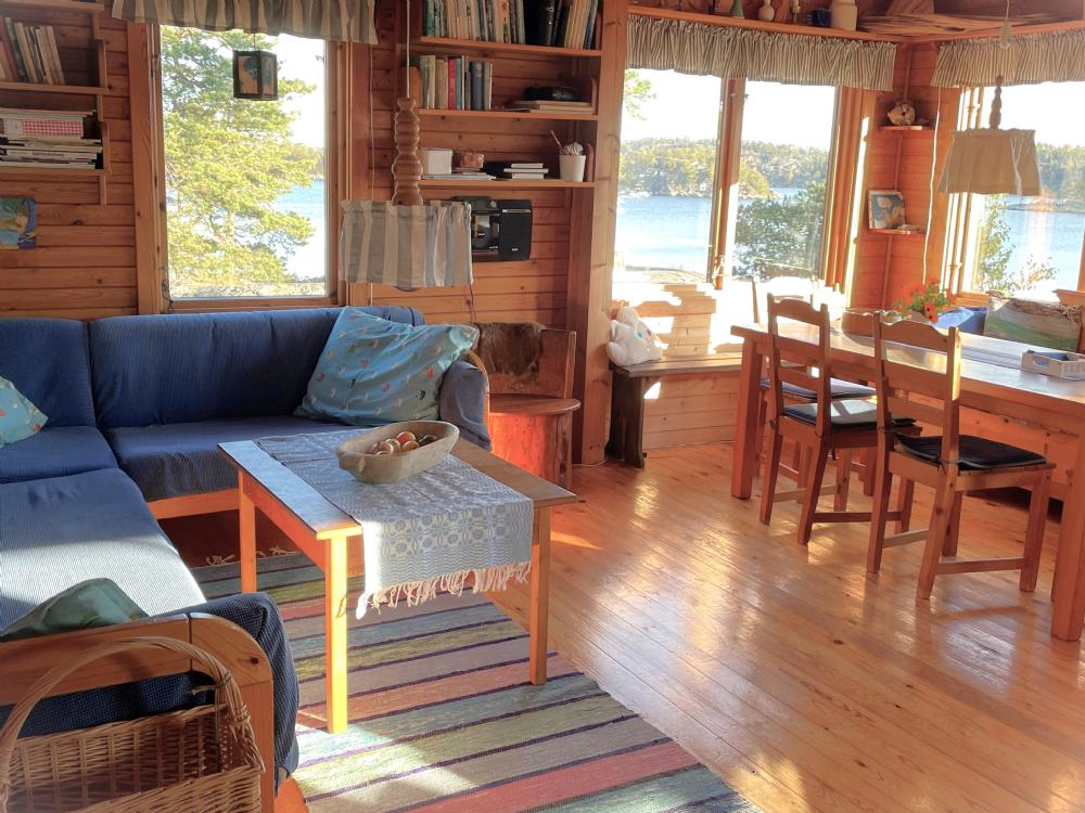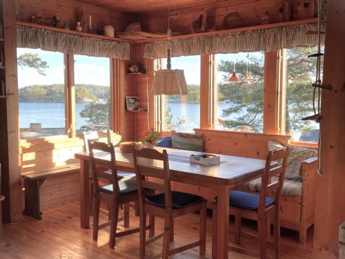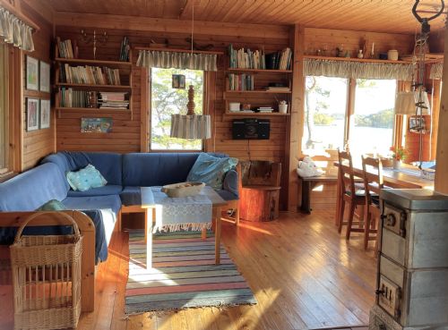 ID3201Stor sjötomt 13 800 m2 med 250 m egen strandlinje och 2 privata bryggor, bostadshus, gäststuga och nytt bastuhus ingår i denna natursköna och privat belägna sjöfastighet. Stora huset (65m2) har ett allrum med hörnsoffa och täljstenskamin samt matplats vid fönstervägg mot havet i öppen planlösning mot köket.