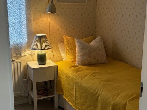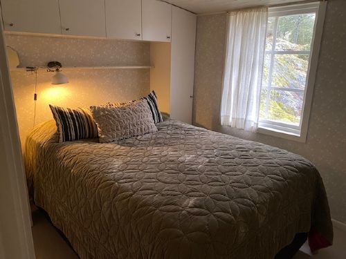Två små sovrum, varav ett med en våningssäng och ett större med en dubbelsäng. Samtliga sängar, inkl. våninggsängen är lyxiga resårsängar.