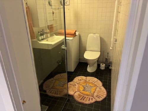 Nyrenoverat badrum. Elelement och luftkonditionering.